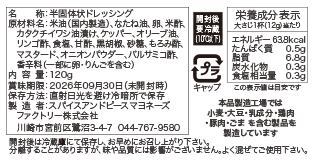 米油(国内製造)、なたね油、卵、米酢、カタクチイワシ油漬け、ケッパー、オリーブ油、リンゴ酢、食塩、甘酢、砂糖、黒胡椒、マスタード、もろみ酢、バルサミコ酢、香辛料(一部に卵・りんごを含む)