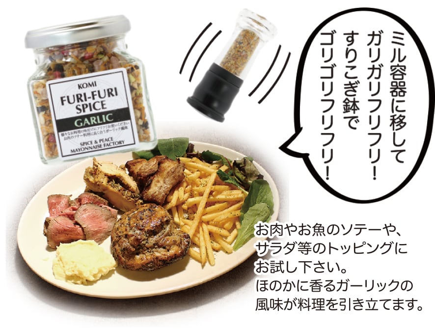 フリフリスパイスは、2色のヒマラヤ岩塩に10種類以上のスパイス&香辛料、異なる味わいの6種類の粉砕ナッツ、離婚ピンやβカロテン等のビタミン類が注目されている、国産トマトの皮と種を加えた風味豊かな万能調味料です。